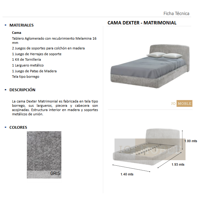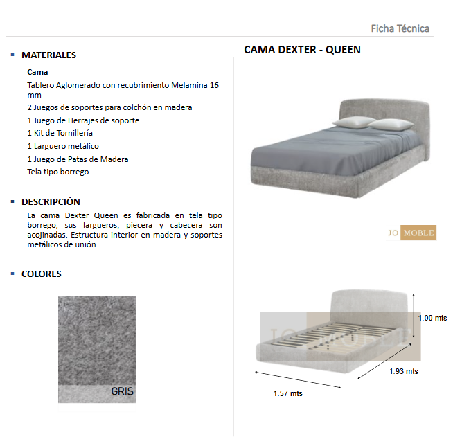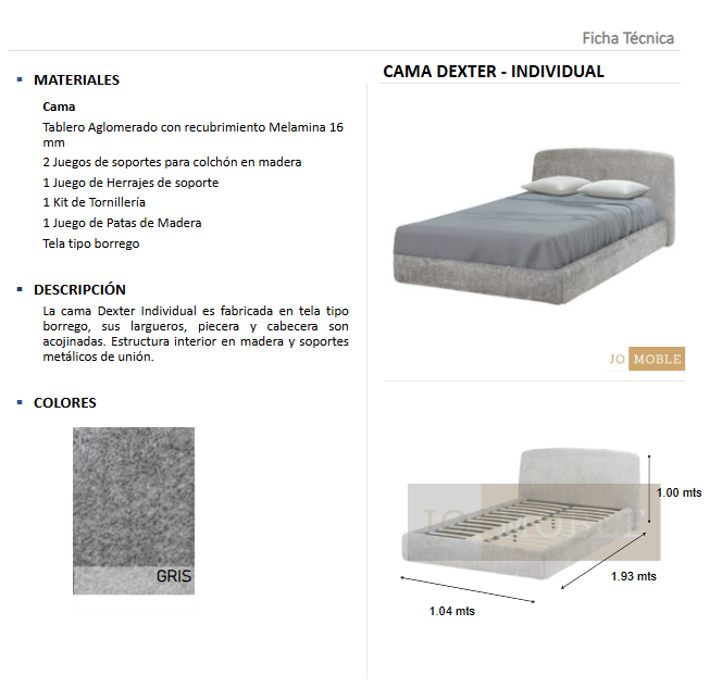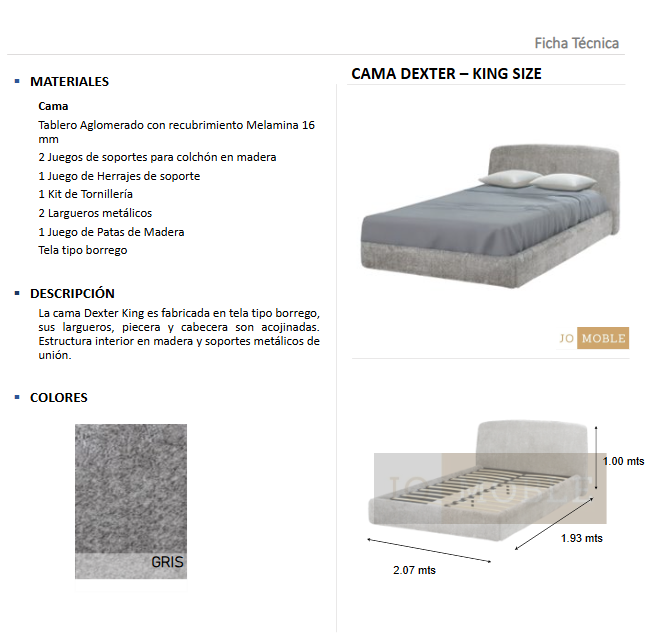 Esta cama Dexter está ensamblada por una estructura de soportes metálicos, madera sólida totalmente acojinada para dar el estilo y comodidad que necesitas.