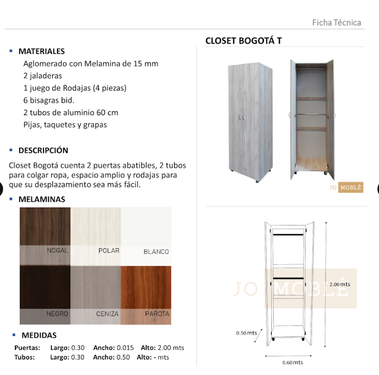 Clóset versátil con espacio para ropa, calzado y accesorios, pensado para adaptarse a aquellos espacios que necesitas.