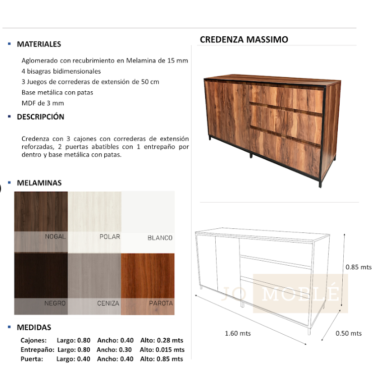 Credenza con diseño contemporáneo, ideal para almacenamiento en salas, comedores u oficinas 1.60 x 0.50 mts.