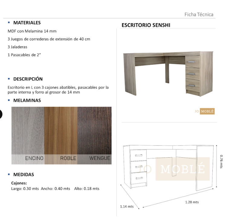 Cuenta con tres amplios cajones integrados, proporcionando un almacenamiento eficiente para documentos y accesorios.