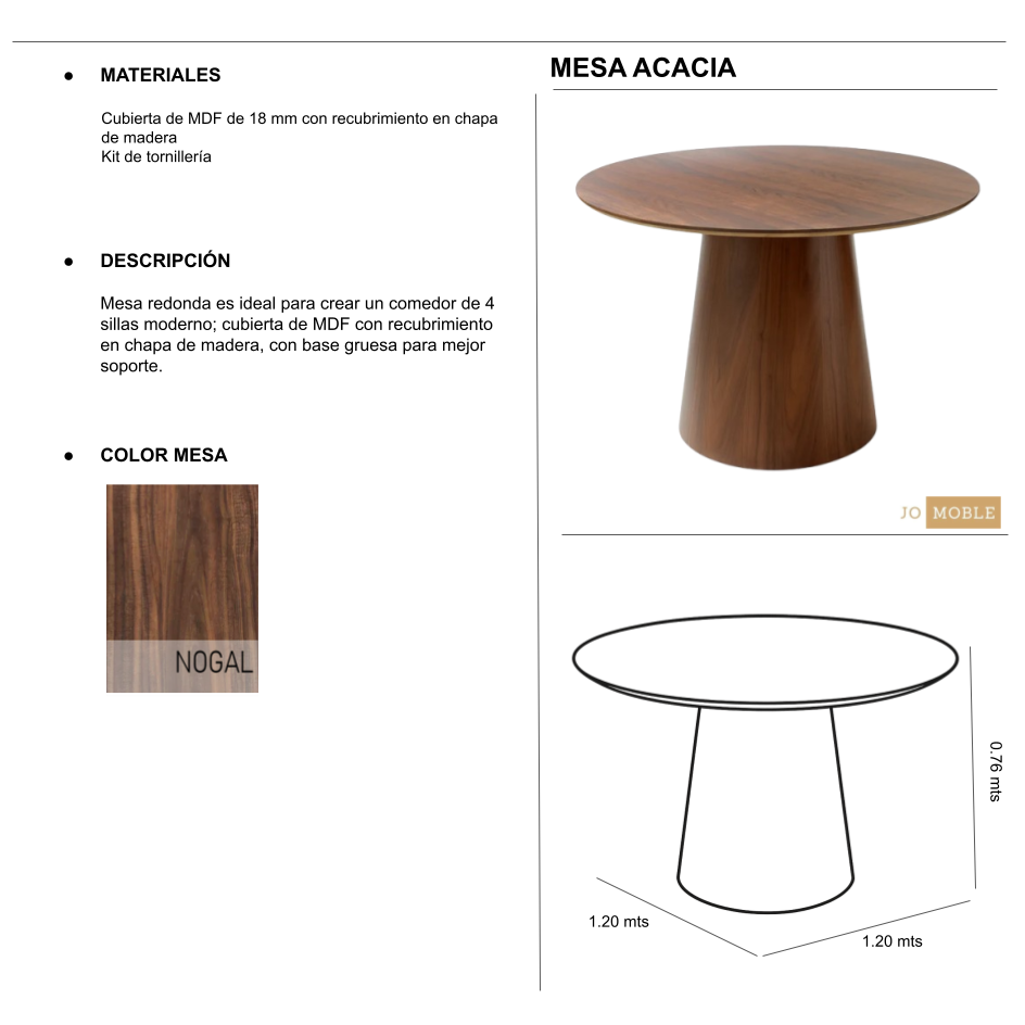 Elegante y moderna, ideal para 5 personas. La mesa Acacia con acabado en Chapa de madera te brinda el estilo y comodidad que necesitas en tu hogar.
