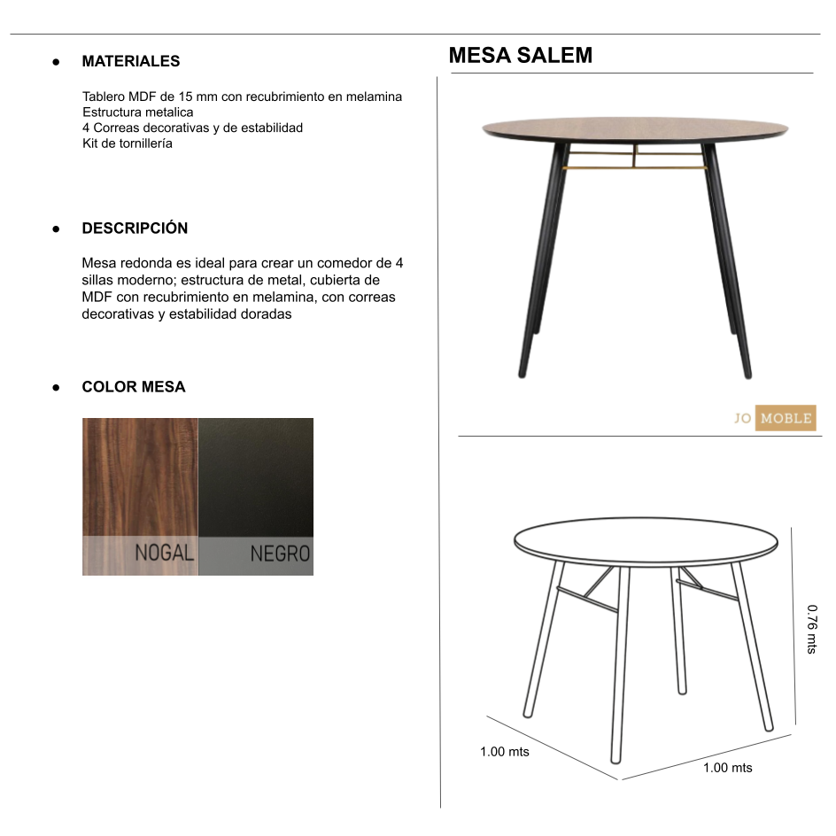 Tu espacio merece una mesa que refleje estilo y lujo. La mesa Salem tiene un acabado moderno con base metálica y detalles en dorado.