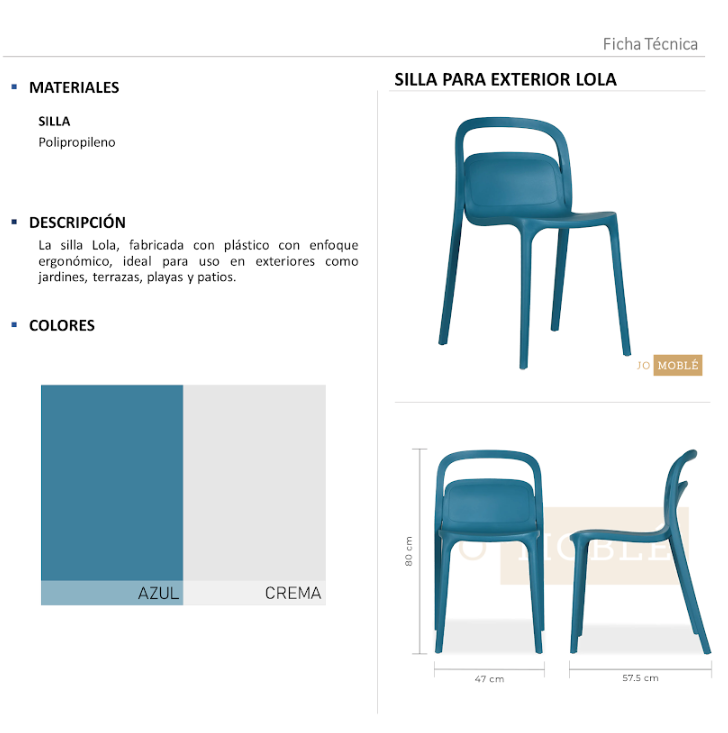 Su diseño apilable facilita el almacenamiento, mientras que sus materiales resistentes la hacen ideal para exteriores.