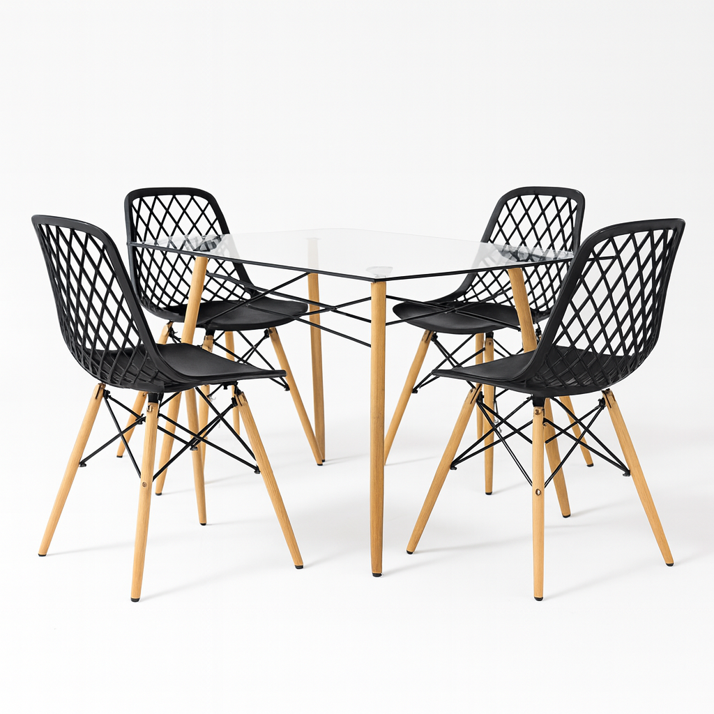Comedor minimalista. Una excelente opción que sale de lo común pero sin perder la comodidad y estilo moderno. Las sillas y su increíble respaldo de rombos, lo adaptará en el lugar ideal para sumar a cualquier tipo de espacio del hogar.
