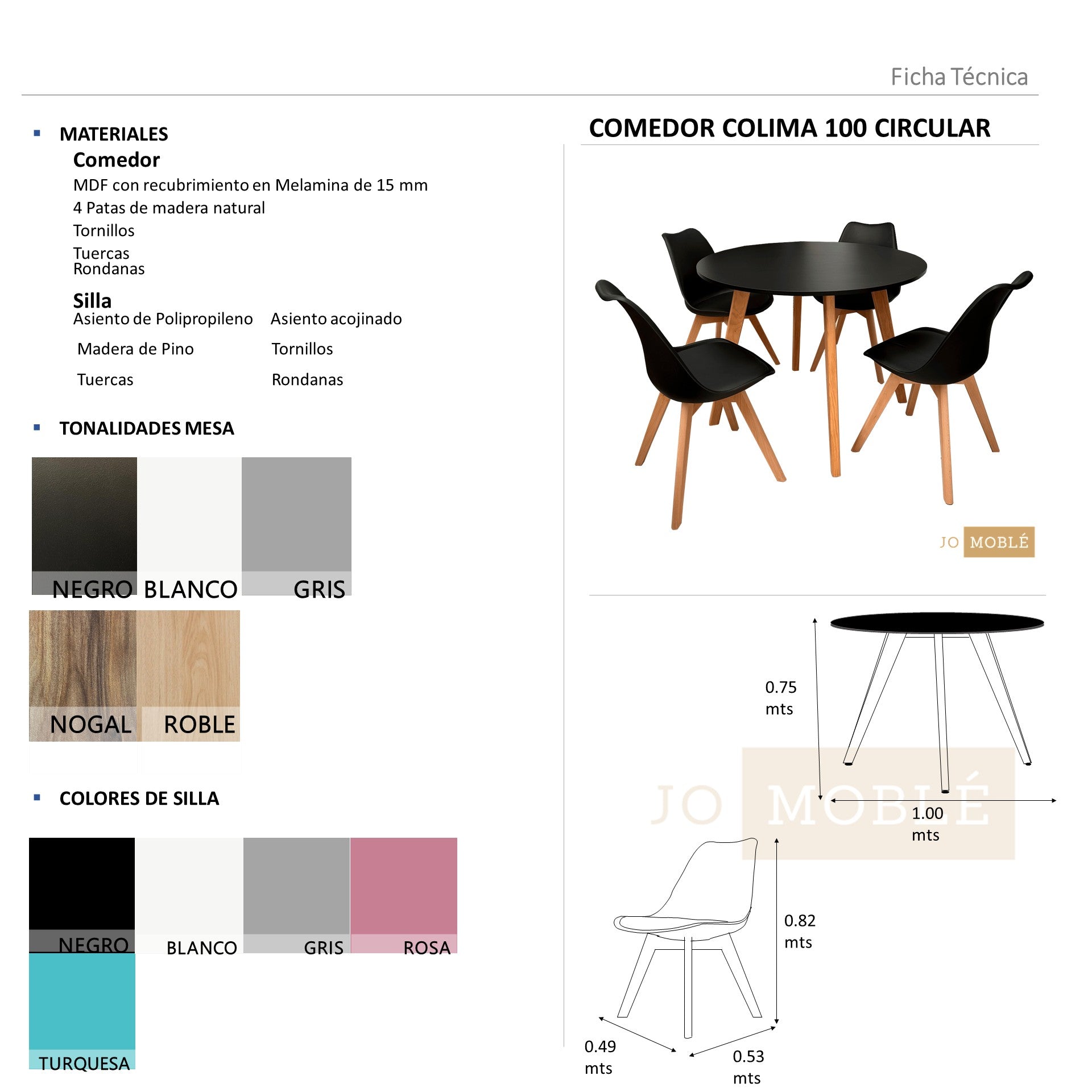 Incluye: 4 Sillas Colima y 1 Mesa Colima 100 Circular