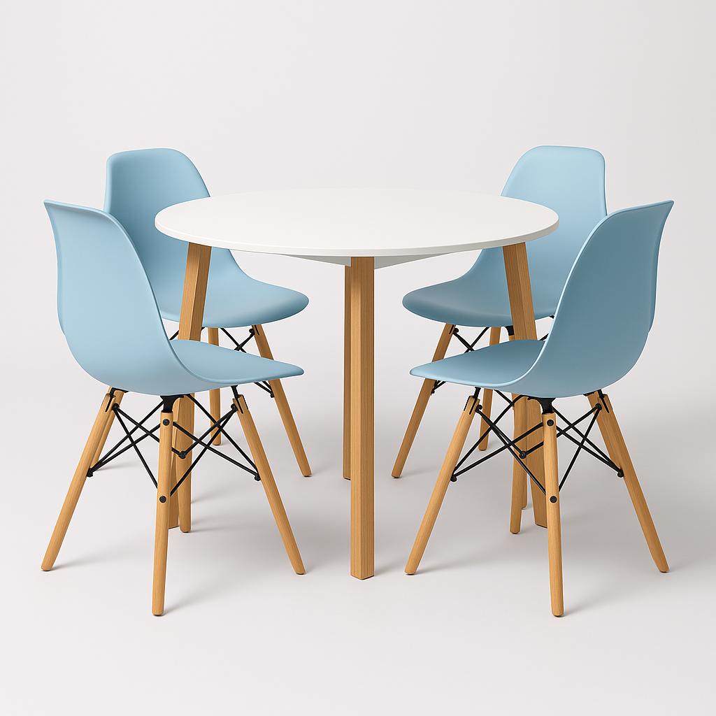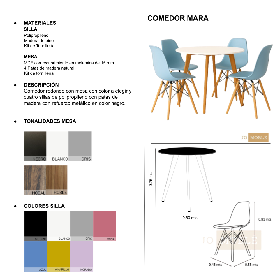 Incluye: 4 Sillas Colima y 1 Mesa circular de 80 cm