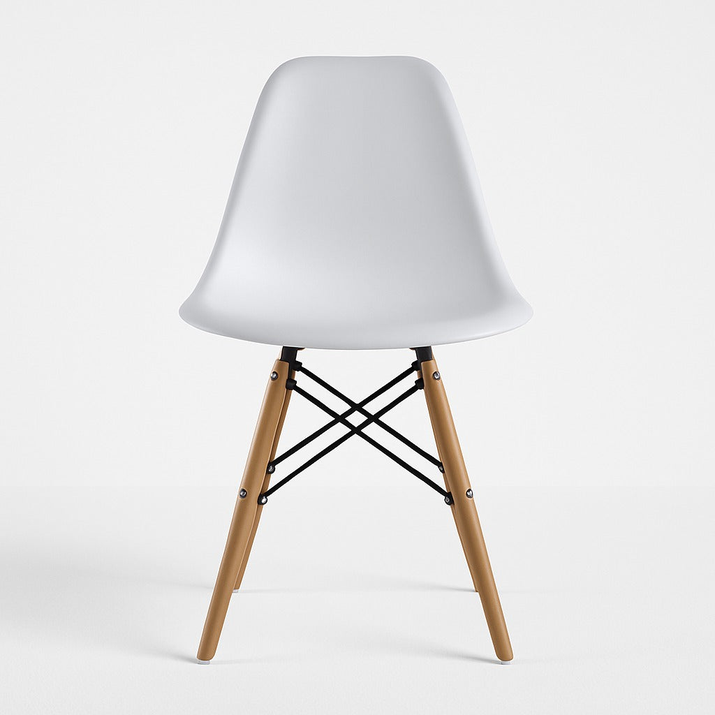 Su asiento orgánico fabricado en polipropileno en conjunto de su base de cuatro postes de madera unidos por medio de varillas entrecruzadas, la ubicación en el elemento ideal para sumar a cualquier tipo de espacio una dosis perfecta de comodidad y buen diseño.